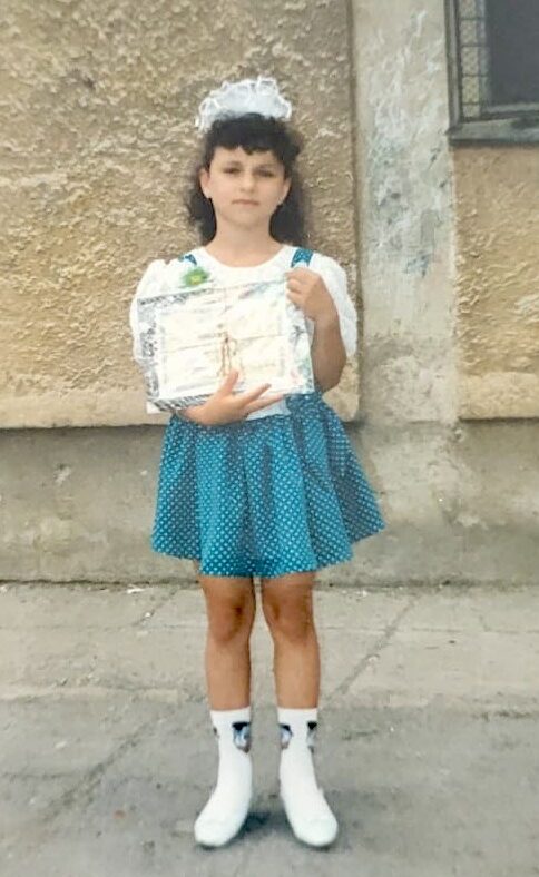 “The photo above was taken right after the end-of-year party, in my classroom. We had to learn a song or a poem and perform it in front of our classmates and parents. The teacher here was Mrs. Elena Griva, a warm and fundamentally kind person whom I loved and respected very much.”