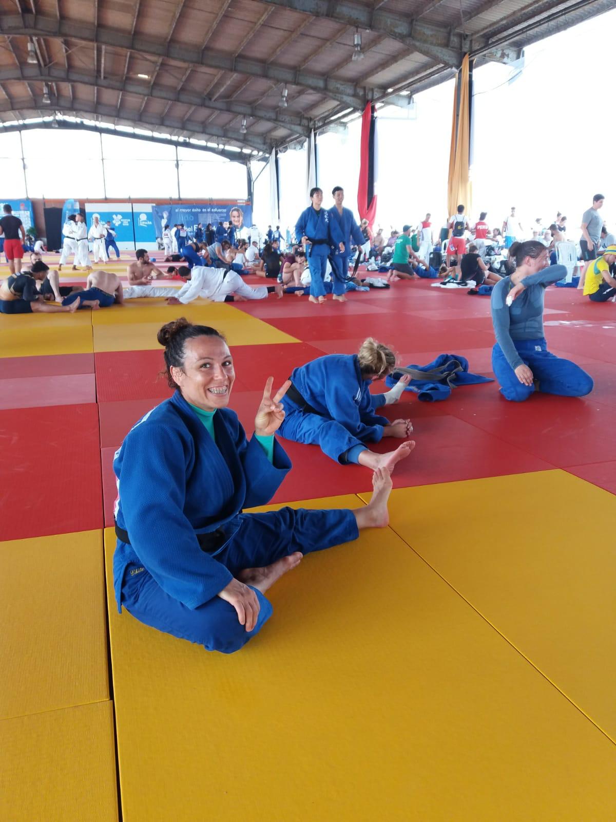 “Former French champions turned coaches Automne Pavia and Larbi Benboudaoud came to Romania in 2022 for two days of training with our national coaches (here with me Andreea Catuna, Alina Dumitru, Dan Deliu and Monica Ungureanu). Generally speaking, I have never talked much with my rivals off the mat. Paradoxically, the one I talk to the most is Majlinda Kelmendi, despite our long rivalry. I really enjoy talking with her.”