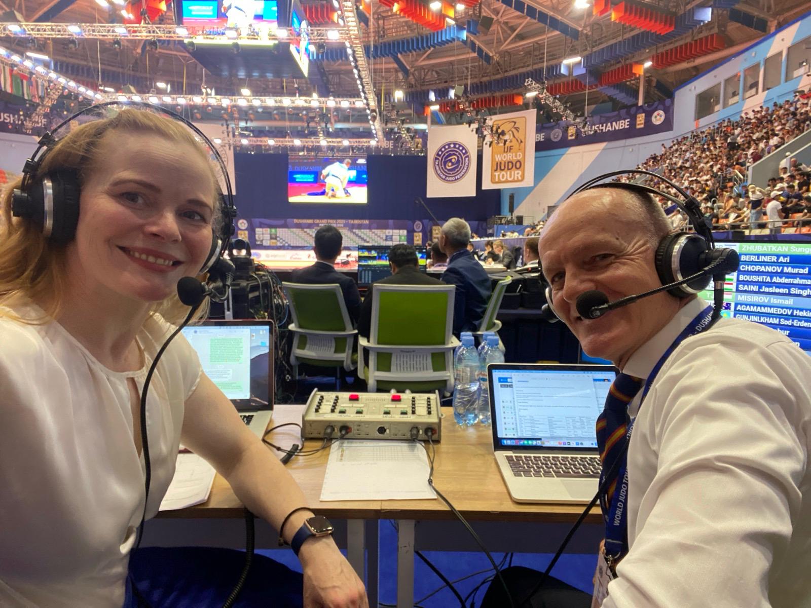I started in 2011 – my first event was the European Judo Championships in Istanbul. During the years, I had a lot of events where I worked as a commentator, for EJU (European Judo Union) and IJF (International Judo Federation). When the IJF world tour took place in Germany I also commentated – but then for the German TV. On the international circuit I mostly commentate with Sheldon Franco-Rooks. There were times when I travelled from one event to the other – the whole year. Meanwhile it is getting less. Also because of my job as a journalist and because of my family. My last one was the Tokyo Grand Slam in December 2023. But even if I am not there I watch it and follow the results.