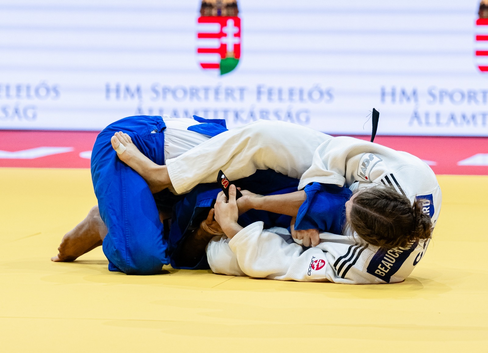 We only presented five fighters at these Worlds: Kelly Deguchi and Evelyn Beaton in U52kg, François Gauthier-Drapeau in U81kg, Kyle Reyes in U100kg, and me. It’s often like this in post-Olympic years. Jessica had an elbow injury, Arthur Margelidon wasn’t in the points yet, Christa taking a rest year. And we didn’t do the mixed teams – the only time we did them was in 2017 in Budapest and Kyle had to face all the big guys [smile]!