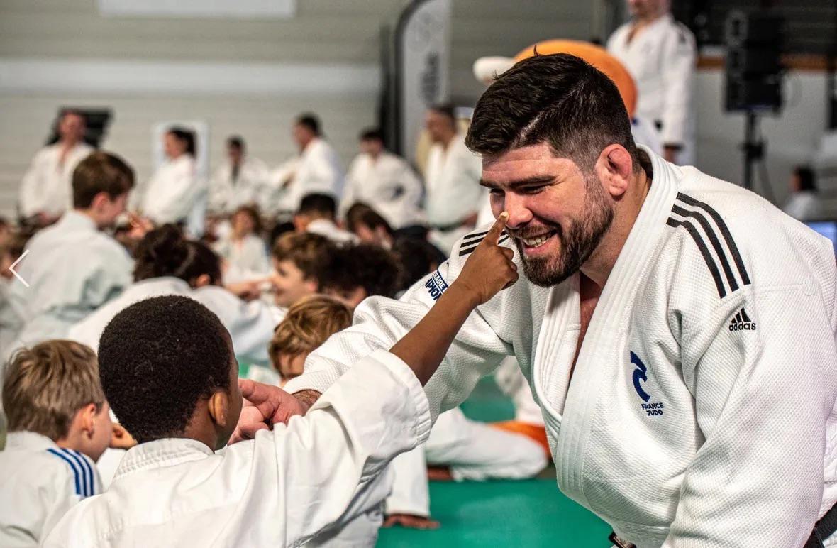 As a child, I never imagined I’d live to see a moment like this. I dreamed of titles, I dreamed of medals… Nowhere was it written that my path would lead me to the carpet of the fiftieth edition of the Grand Slam… With a show to deliver, a message to get across and a microphone to do it with. There’s no diploma, no training, no clearly defined career for moments like this. I never thought judo would have allowed me to have so many adventures. And quite honestly I don’t know, with a complicated childhood, what I would have become without it… That’s what I thought of when I got off the mat. I was exhausted from the three days of madness, with shows to deliver, commentaries for La chaîne L’Équipe and corridor animations to manage. When I first imagined the character of Kodomo, I never thought it possible that one day he would land on the carpet at Bercy. And that I’d be at his side to reassure and comfort him when fighting was too difficult for him. Perhaps it was too early for him? Or maybe he’s not cut out for it? Not every child is cut out to be a champion, but judo is also designed to give them the foundations for a balanced life full of values. And maybe even make them happy. In creating Kodomo, I finally gave back to judo what it had given me. And that, I believe, is called hope.