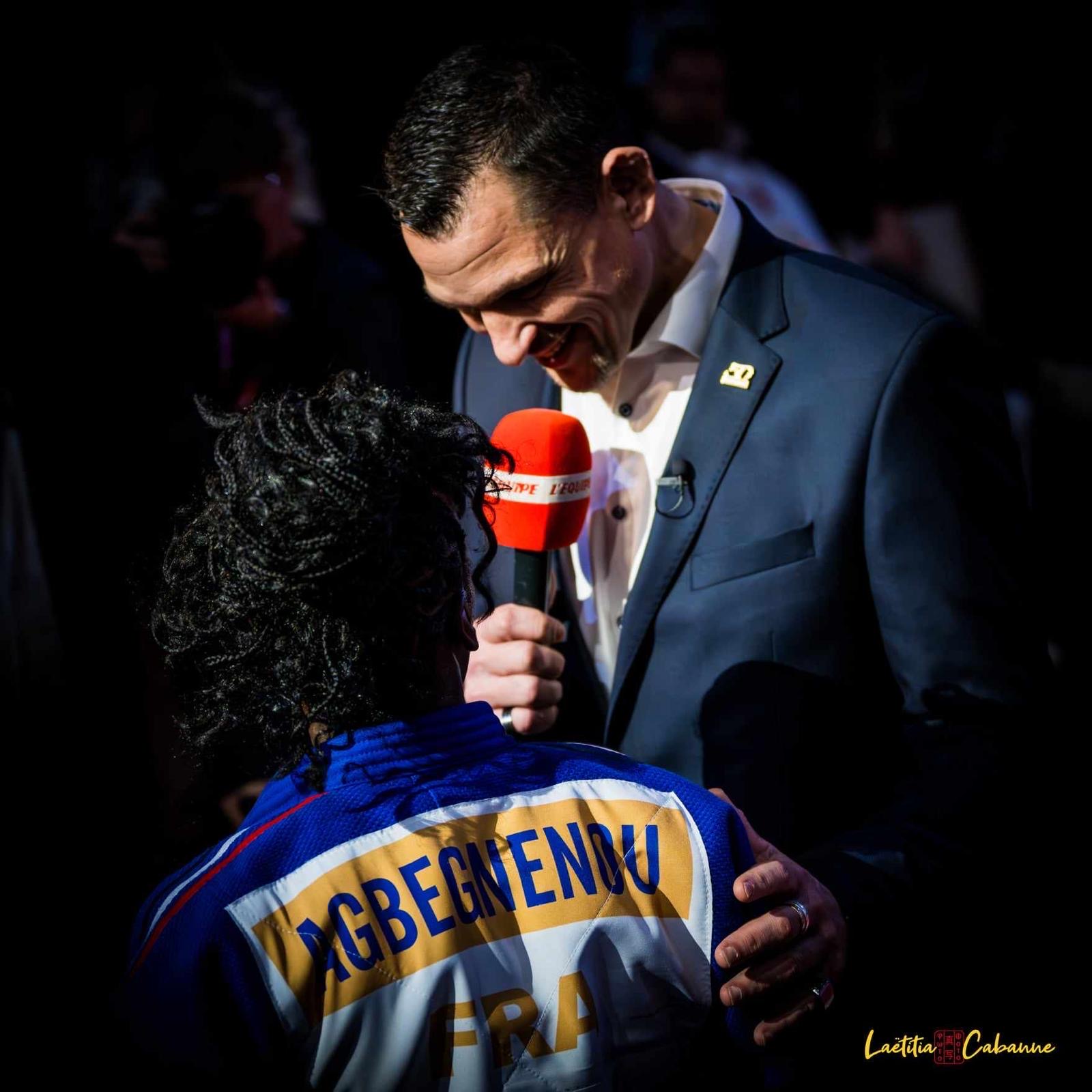 Before that, I was lucky enough to meet Xavier Richefort, another extraordinary man in my life. I learned an enormous amount from him. He was the voice of volleyball. He lent it with talent to the judo world. A former volleyball player and French champion with PSG. We met in 2012, to commentate together on the first Paris tournament on L’Équipe 21. It was love at first sight. Where I was anxious and stressed, Xavier was nonchalant and cool. He taught me all the tricks of the trade: the microphone that didn’t work, the orders in the headset to manage, the commercials to send out… We had one thing in common: we loved people, telling stories… And laughing. I had so much fun with him. He reached the stars in 2022. I miss him a lot… As far as the athletes are concerned, I remember the richness of having commented, for four years, on the IJF circuit on L’Équipe channel, accompanied by members of the French team past and present: Loïc Korval, Larbi Benboudaoud, Loïc Pietri, Céline Lebrun, Cyrille Maret, Fanny-Estelle Posvite, Marc Alexandre, Romane Dicko…