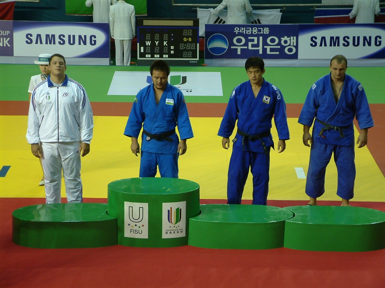 In third place, up like a cuckoo, I lead until fifteen seconds from the end against Poland’s Janusz Wojnarowicz. The medal is within my grasp, almost around my neck. He calls the doctor, complains about his knee. He’s done for. And then, in a last hope, he throws himself at me in ko soto gari, which he did very well. I step back and look for rotation, but the 180kg Pole is too heavy for me. I tip over. Ippon for him.