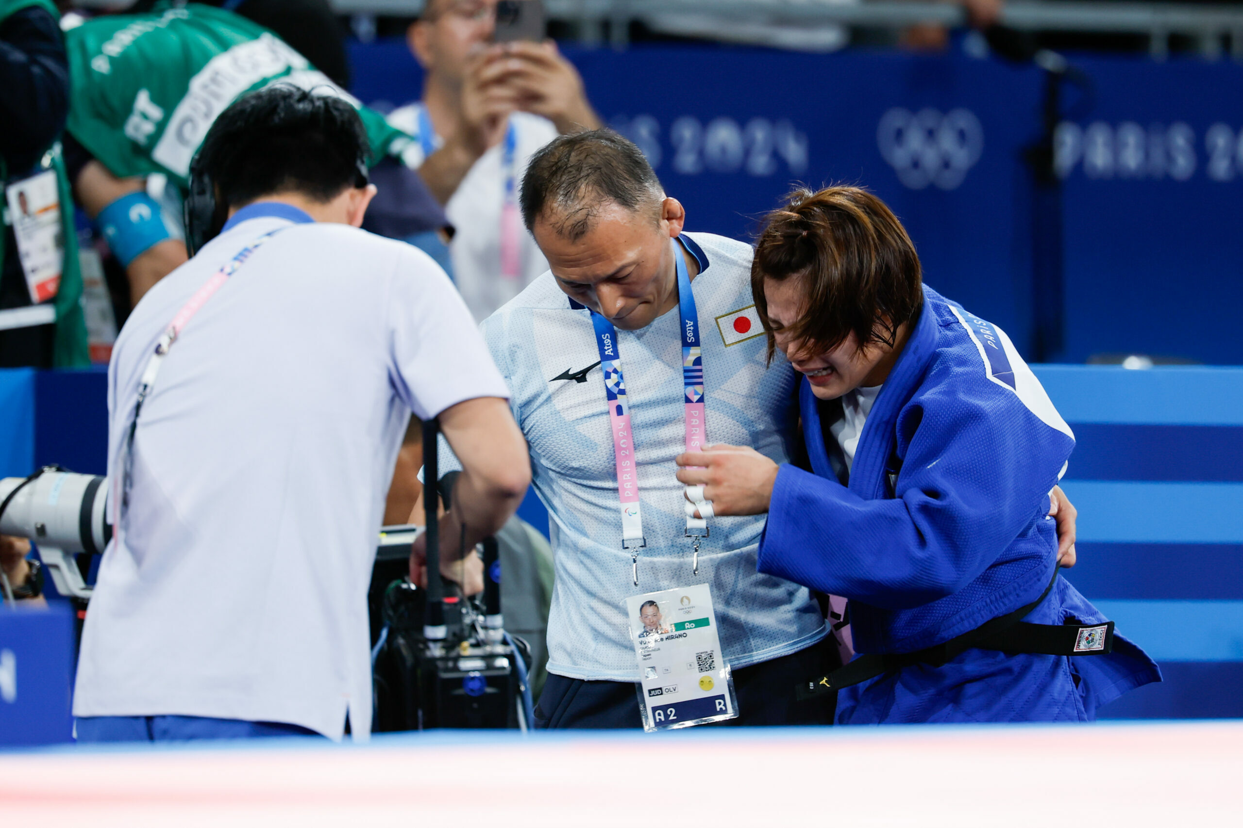 De la détresse de la Japonaise, tout a été dit, ou presque. Sa quasi-invincibilité de naissance l’avait-elle conduite à prendre de trop haut les enjeux de la ranking list, au point de ne pas mesurer le danger que pouvait représenter le fait d’hériter de la tout de même numéro un mondiale si tôt dans son tableau ? Chapeau à son entraîneur, l’ancien -60 kg Yukihide Hirano, qui resta au soutien le temps qu’il fallut pour accompagner ce moment de brisure d’une intensité extrême.