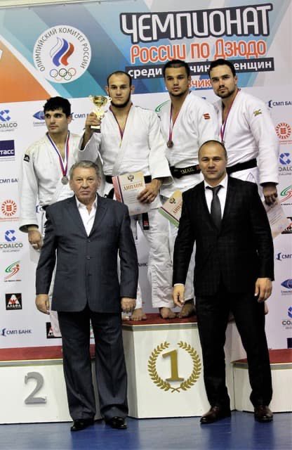 September 18, 2017. His first and only podium at the Russian championships, alongside Alikhan Chechoev (1st) and Izmail Khamkhoev and Aleksander Roslyakov (3rd). ©Theódoros Tselídis Archives/JudoAKD