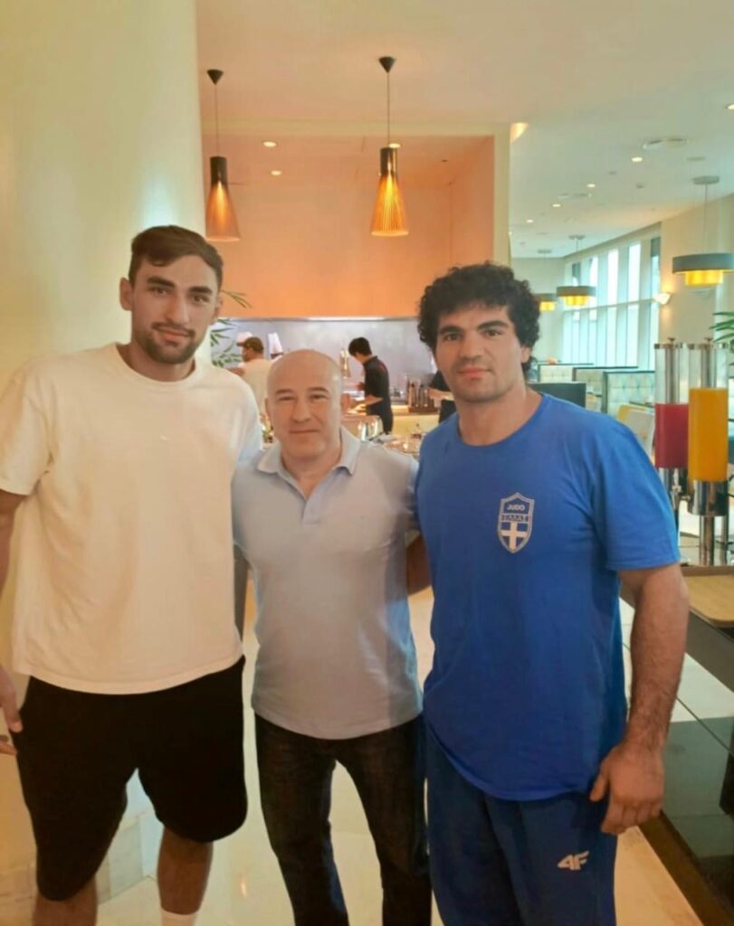 With Zelym Kotsoiev and Kazbek Tsagaraev, head coach of the Vladikavkaz club. ©Theódoros Tselídis Archives/JudoAKD