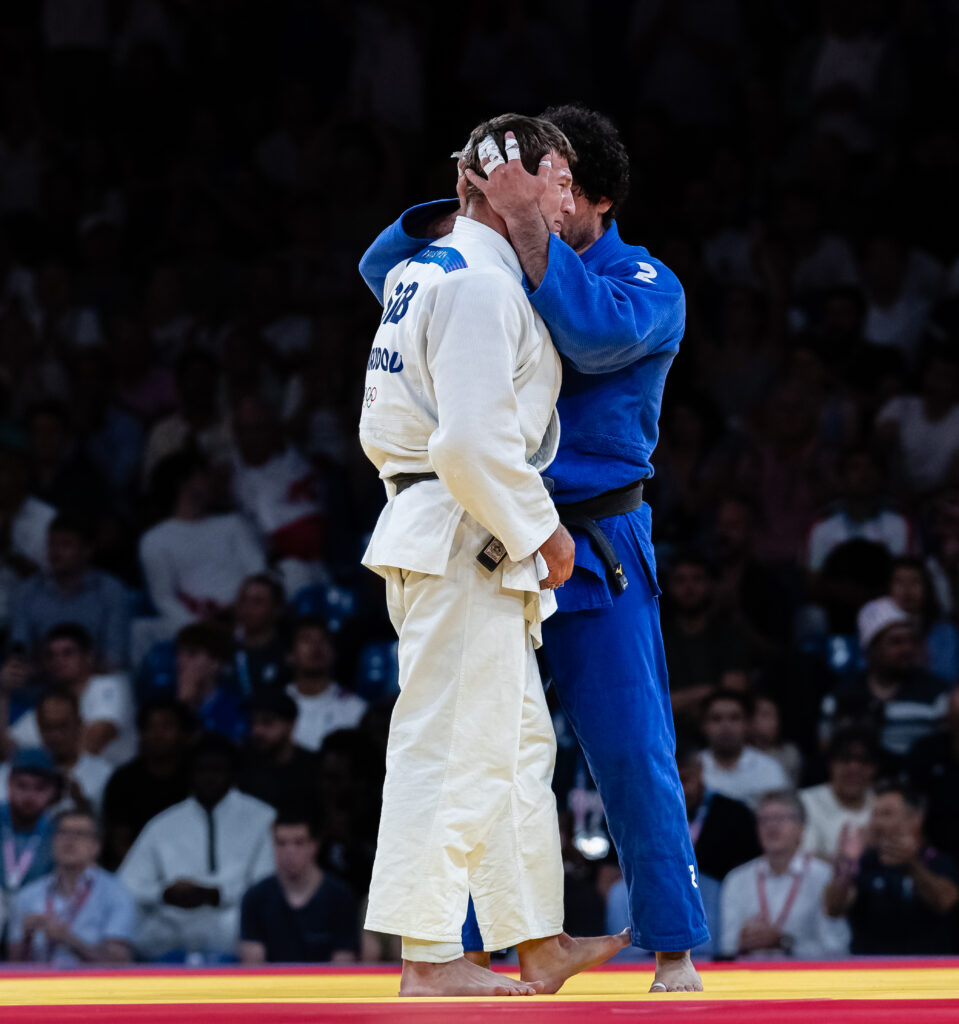 Paris, July 31, 2024. An Olympic medal full of respect for his final opponent of the day. ©Paco Lozano/JudoAKD