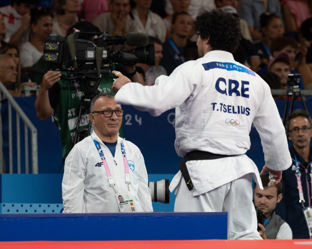 We are in May 2025, heading to the warm sun of Benidorm (Spain), as part of a profile of Russian Inal Tasoev for the French weekly L’Équipe Magazine. A few minutes before boarding the plane, a text from Tasoev’s assistant gives us the contact details of the person who will provide translation on site. It is Theódoros Tselídis, Olympic medalist in the U90kg category at the Paris Games ten months earlier.